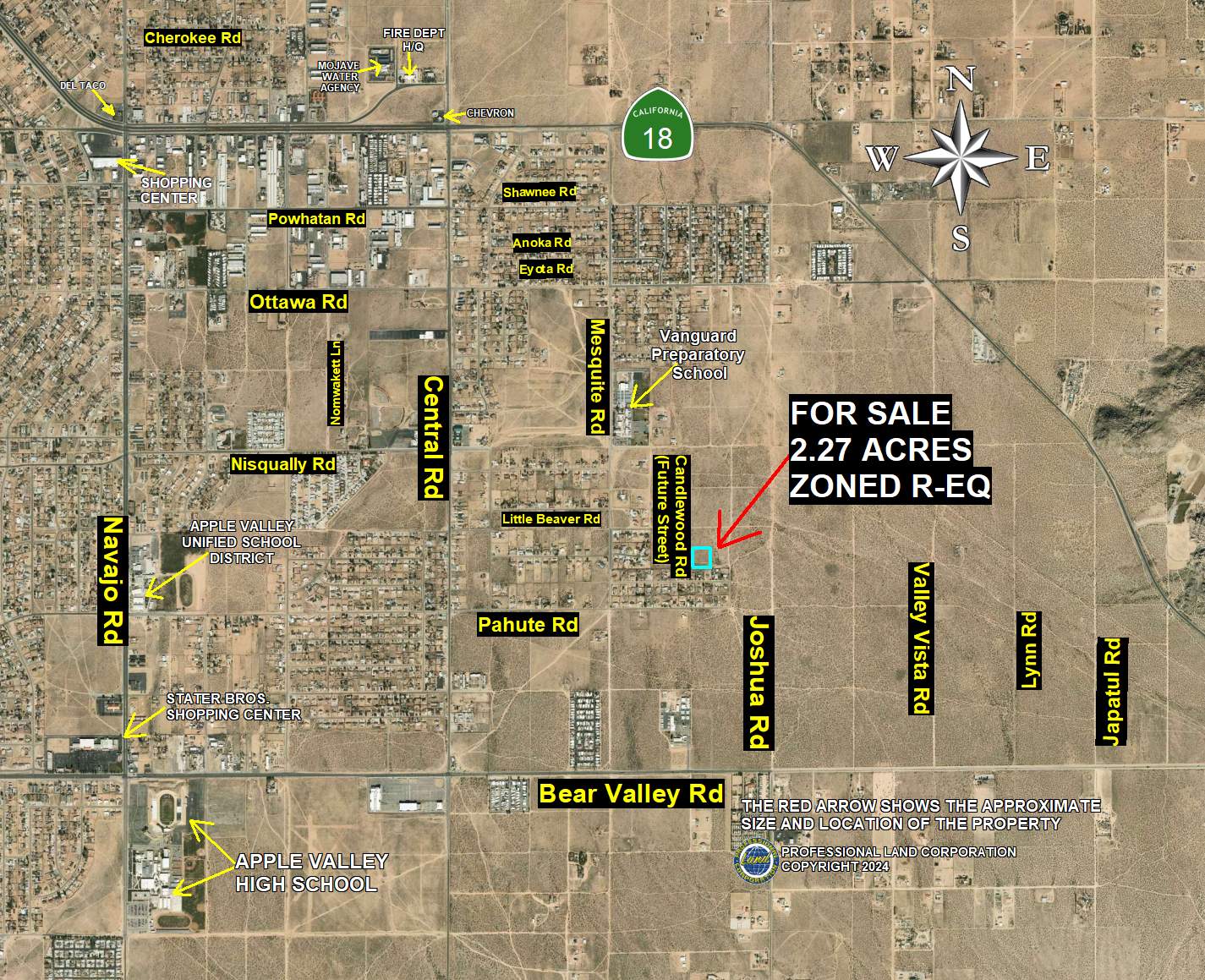 Description: Description: This prime 2.27-acre high density residentially zoned land parcel is located in the city limits of Apple Valley on the east side of Candlewood (future street), which is located about .33-miles southeast of the Vanguard Preparatory School, about 1.66-miles east of Apple Valley Unified School District, about 1.84-miles northeast of the Stater Bros. Shopping Center, about .75-miles east of Central, about 1.65-miles northeast of Apple Valley High School, and about .63-miles north of Bear Valley Rd. Bear Valley Rd. is the prestige thoroughfare of the Victor Valley. At the southeast corner of Bear Valley and Navajo is Apple Valley High School that already has a large student population. This High School is a modern and technologically advanced facility, boasting of its own professional sports stadium. This property is in recorded Parcel Map 4870.
